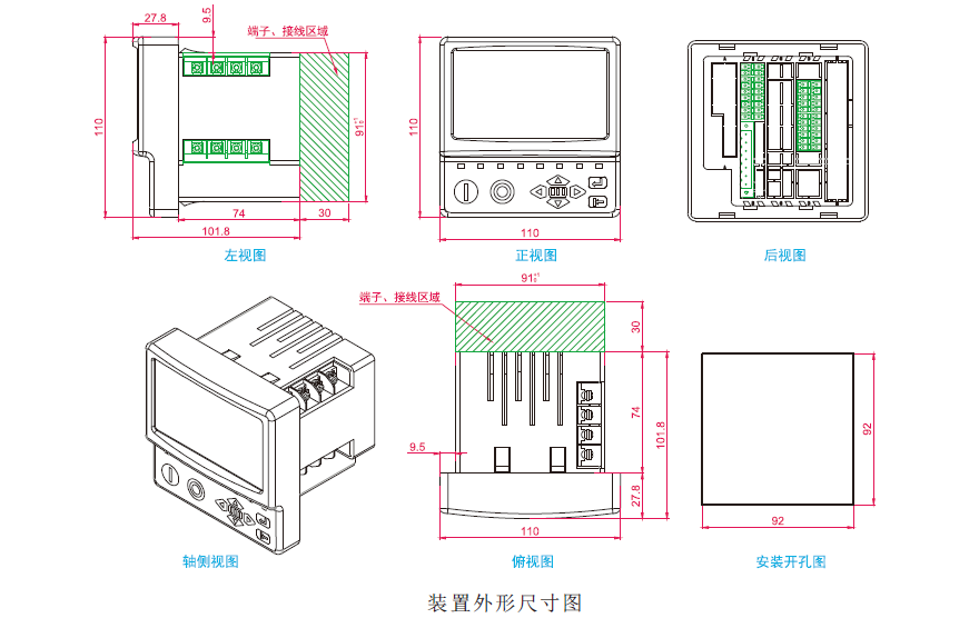 12. DIN 标准仪表尺寸92mm*92mm,适用各种类型的开关或机箱安装;