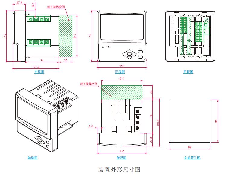 11. DIN 标准仪表尺寸92mm* 92mm,可以实现方便灵活的现场安装;