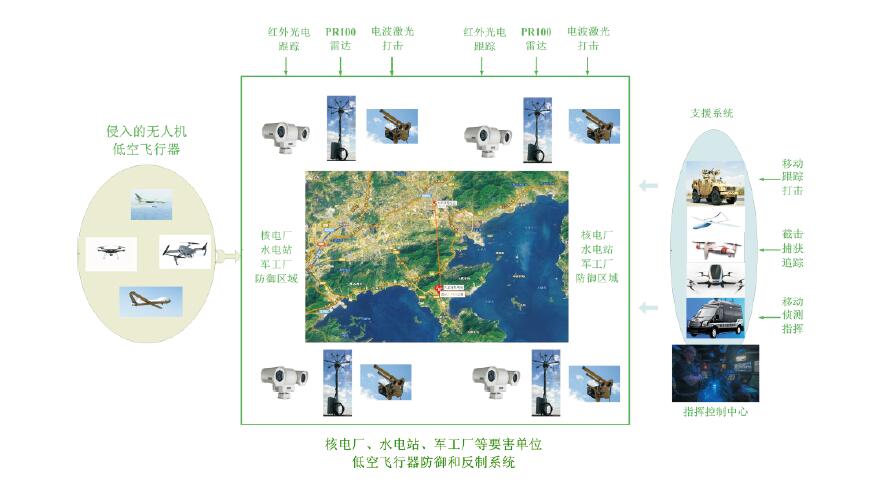 集成了PR100外源被动雷达的侦测、监察、打击三位一体的低空防御和反制系统: