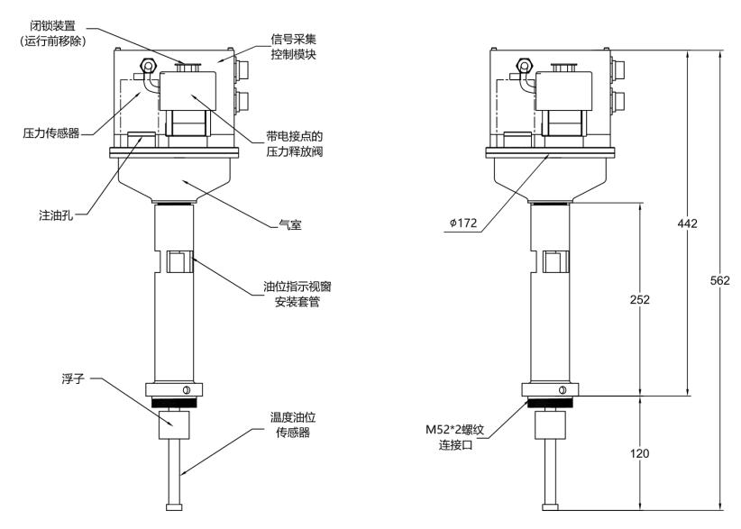 油位测量:标准0-120mm, 其它尺寸需要定制