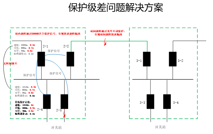 • 站间采用光纤差动保护,实现100ms的故障隔离功能。