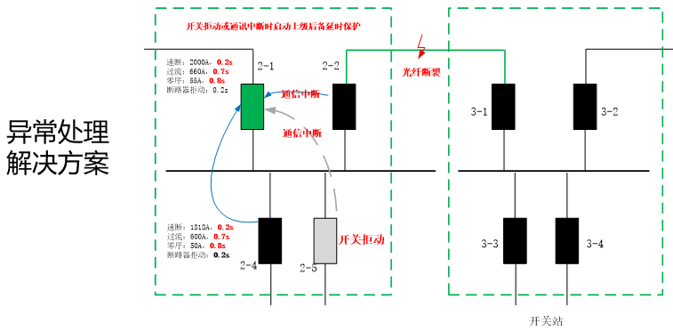 • 开关拒动,通讯异常的情况下启动后备保护延时动作,保证系统的可靠运行。
