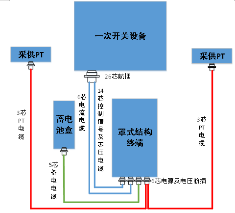 终端与后备电源、一次开关设备的构成框架示意图(以电磁式接口为例)